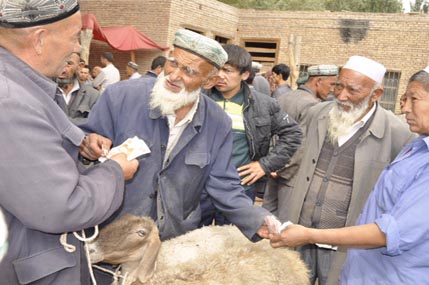 Sadly camels no longer feature in Kashgar’s weekly livestock market, but it’s still a rollicking affair, with plenty of baa-ing, moo-ing and shouting, and animals changing hands at lightning speed. Purchases are carted off by motorbike.