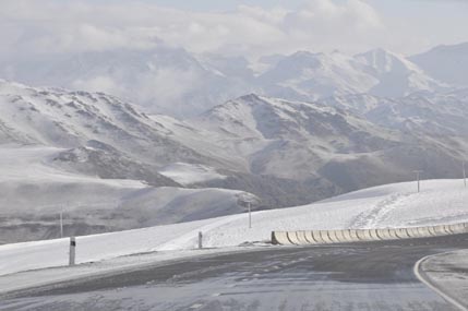 Summer was now turning to autumn, and I crossed the final pass to China in snow. I was now in Xinjiang, China’s westernmost region and (nominally at least) the land of the Uyghurs. Compared with their Tajik and Kyrgyz cousins, I’m afraid Uyghurs aren’t the snappiest of dressers. Shabby grey jackets for men and drab skirts and blouses for women are the favoured clothing. Women’s veils are especially strange: they look for all the world like a brown towel thrown over the head.